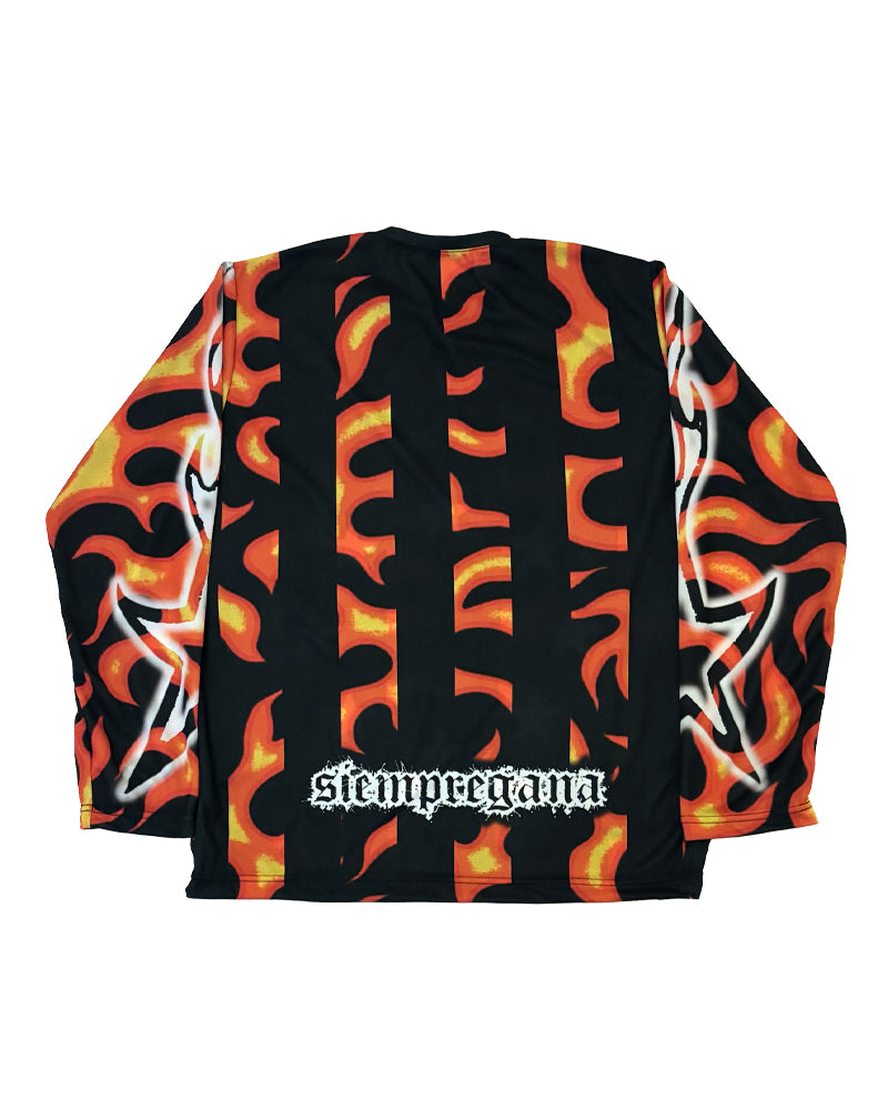 ¡Experimenta la comodidad del JERSEY "CLUB DE FUEGO"! Diseñado por Siempre Gana, este full print bajo pedido se produce en solo 5 días. Ideal para cualquier clima. Todos los jerseys van personalizados con el nombre y número del miembro.